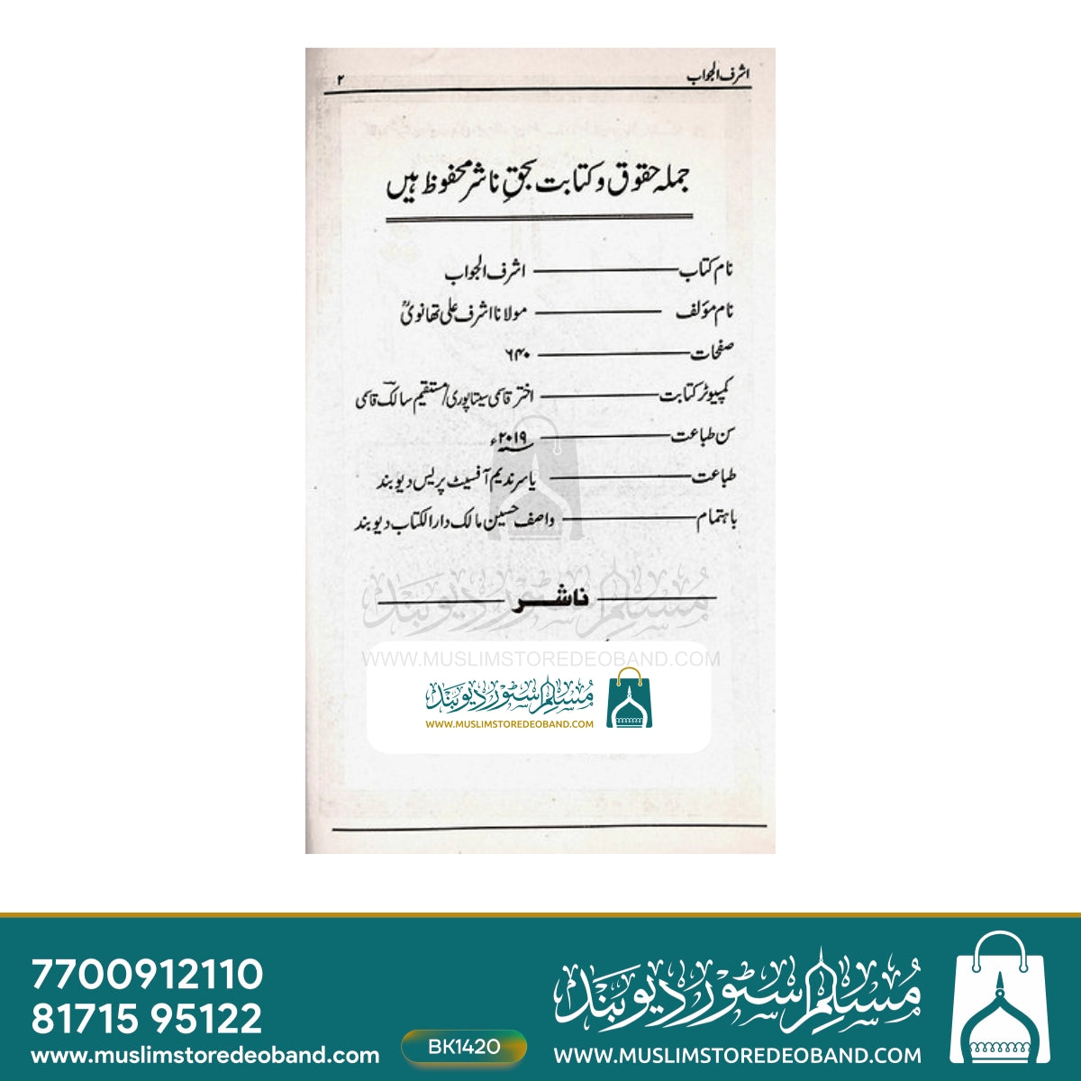Book Author | Maulana Ashraf Ali Thanvi | مولانا اشرف علی تھانوی |