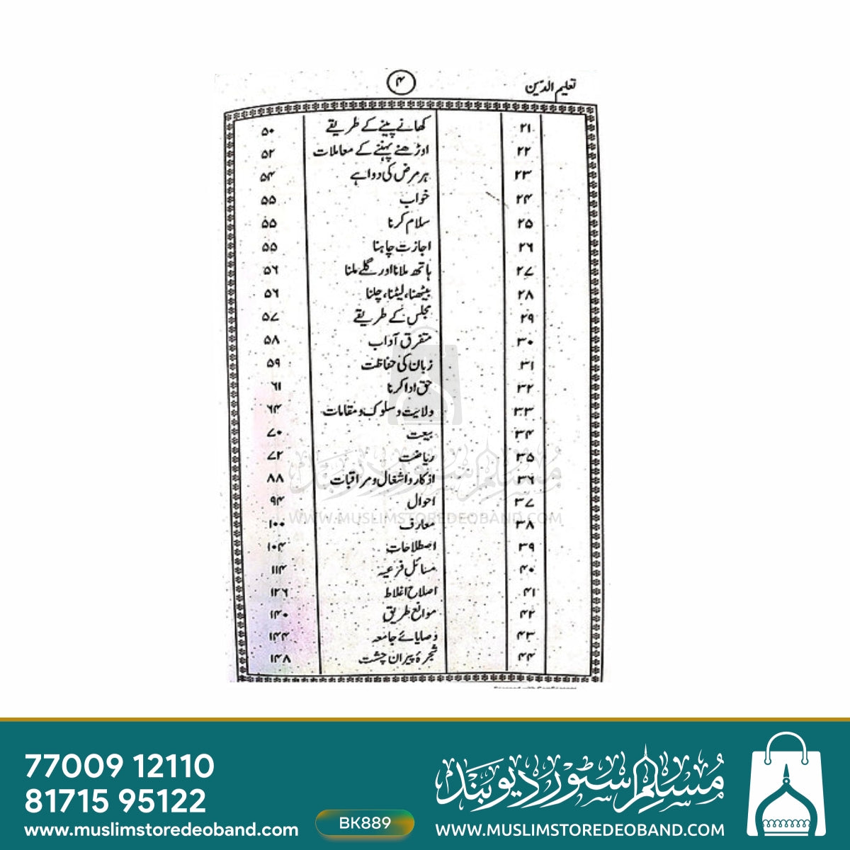 Additional Information for Taleem ud Deen